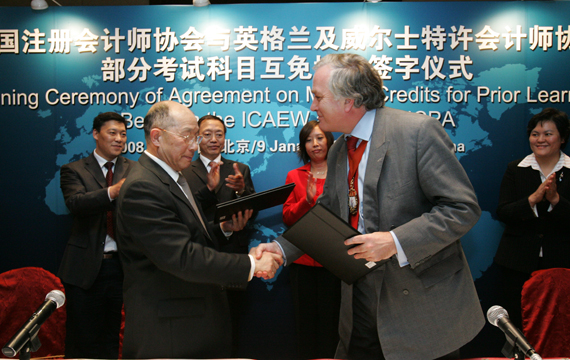中注协刘仲藜会长在签字仪式上表示,与ICAEW实现部分考试科目互免,是中注协推进中国注册会计师资格国际化发展的一个重要步骤,也是中注协深入推进行业人才战略和做大做强战略的一项重大举措。这一协议的签署,对于增强两会会员执业的国际流动,以及密切中英两国的会计合作交流,具有重要意义。